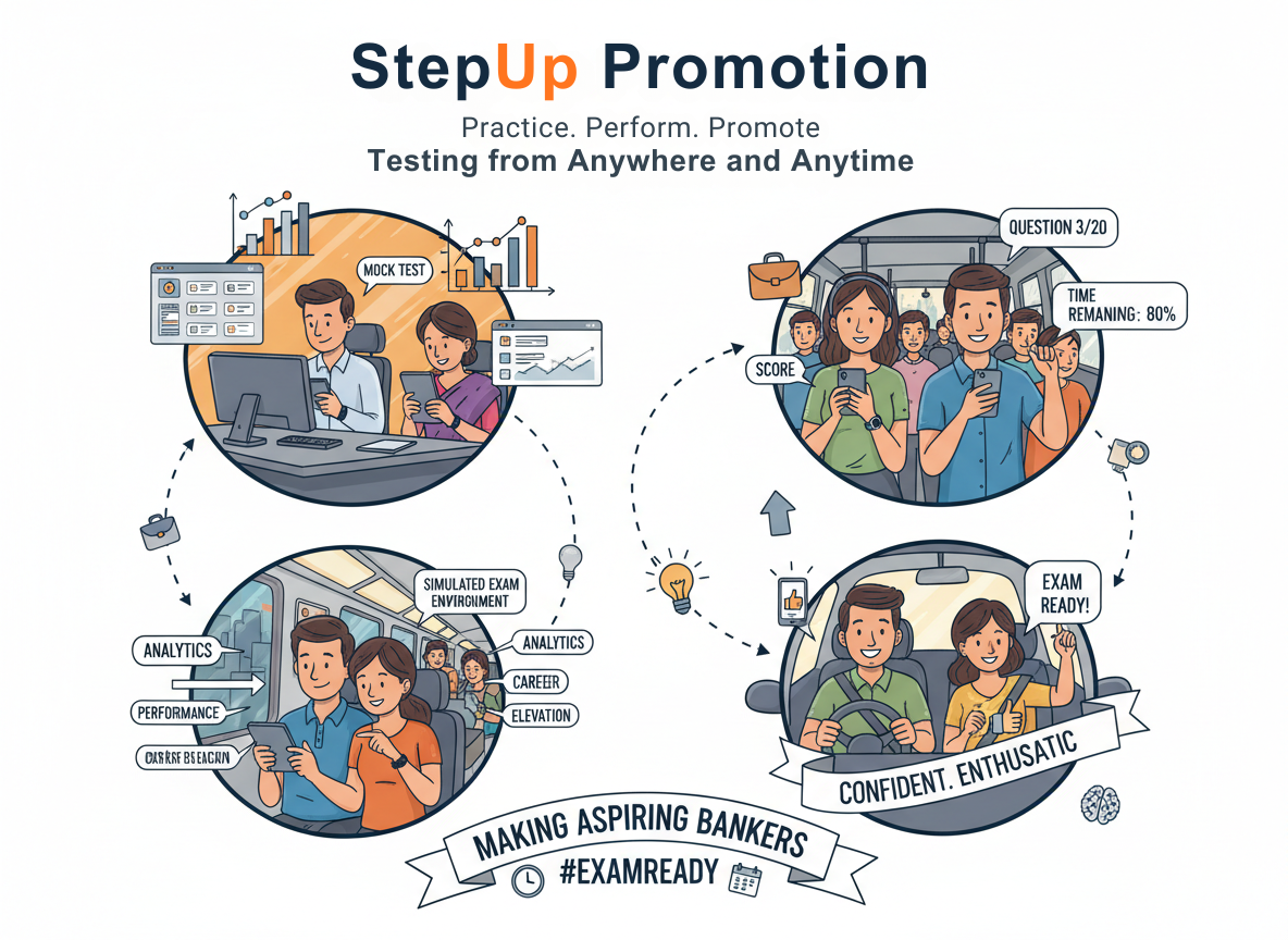 StepUp Promotion is India’s most advanced Ed-Tech platform built to empower learners preparing for Banking in-Departmental Promotion Exams, Government Competitive Exams, MBA Entrance Exams, GMAT, SSC, Bank PO & Clerk etc, and other professional assessments. Our mission is simple yet powerful & revolutionary— to deliver Anytime-Anywhere test readiness through a digital learning ecosystem designed for modern learners to get edge. “To transform every learner into an exam-ready achiever is our Motto”.